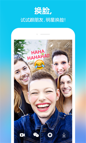 脸部自动识别,轻松拍摄激萌的视频或图片,告别单调,让拍照更有趣,从此爱上自拍!