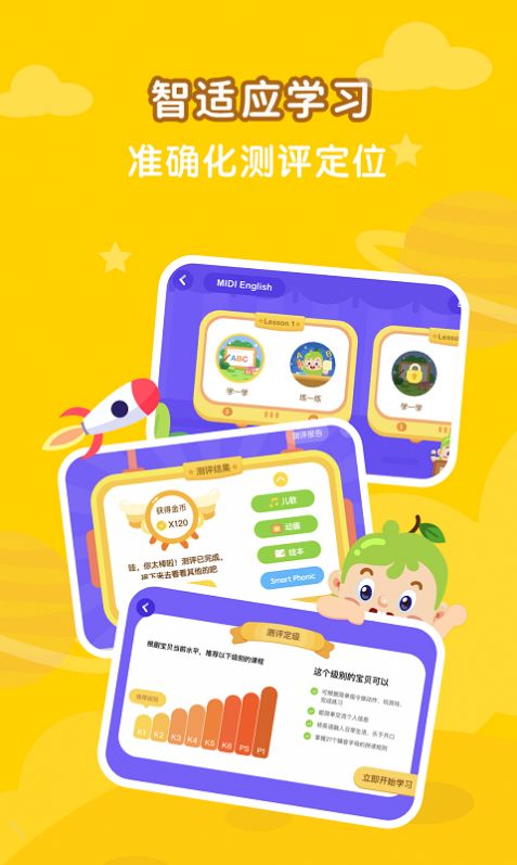 2、支持语音测评结果展示功能,还能够实时为用户反馈孩子的跟读水平;