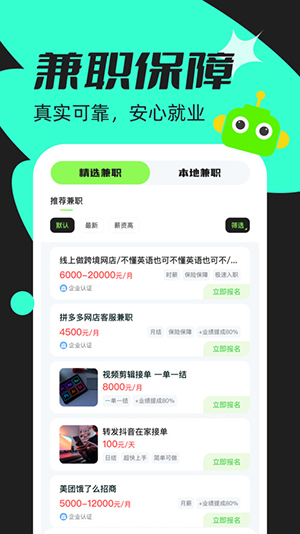 2.平台汇集了丰富的兼职资源,包括线上和线下的工作机会,根据时间和地点灵活选择。