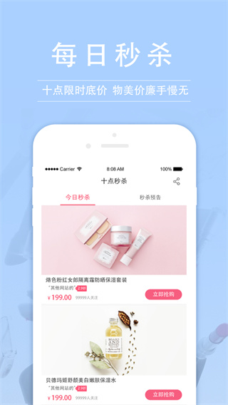1、提供数百款当季热销化妆品,随时更新,让用户轻松找到自己喜欢的商品;