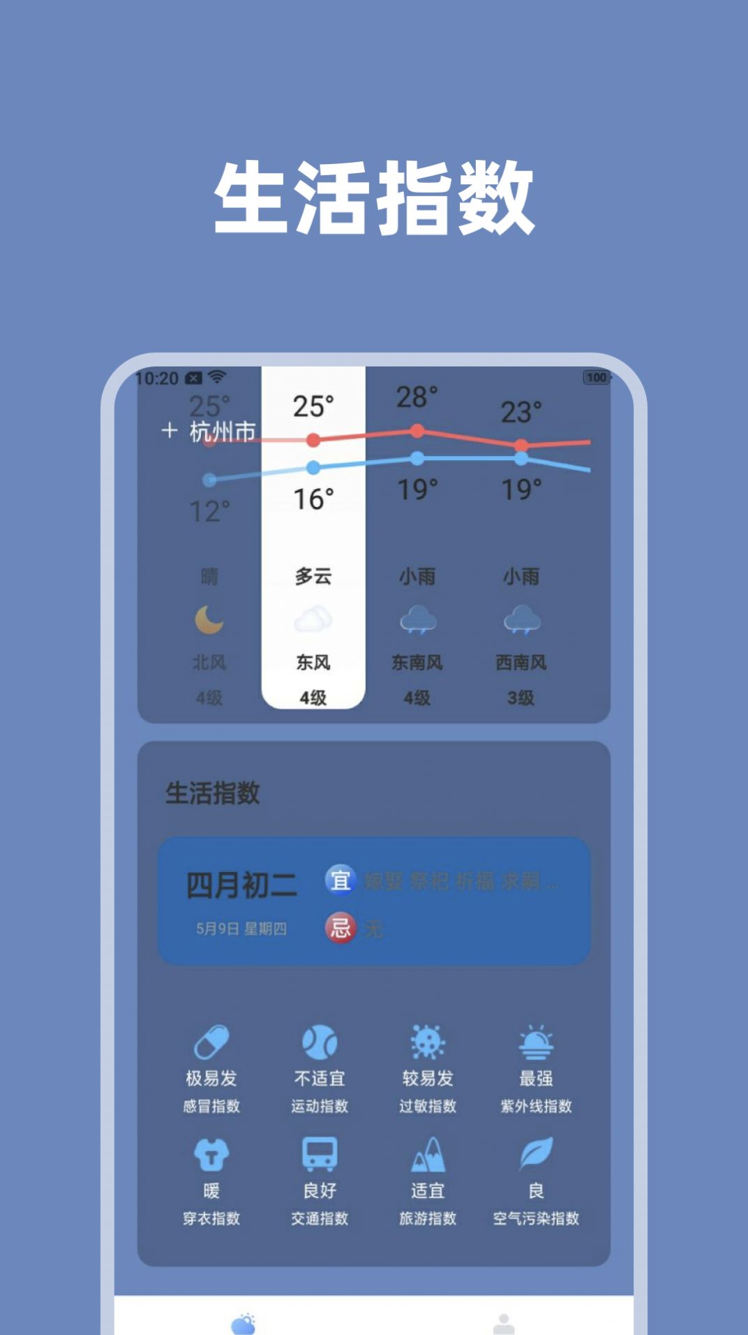 2、生活指数:线上涵盖了大量的生活指数,让你的生活可以更加的省心。