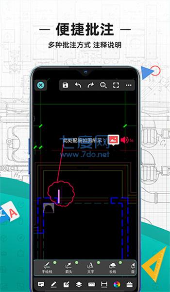 用户可以直接在手机上打开AutoCAD、CAD天正建筑等各版本的CAD图纸,进行查看和编辑。软件支持dwg、dxf等格式图纸的浏览,并可将CAD图纸转换为PDF文档或PNG等格式图片。