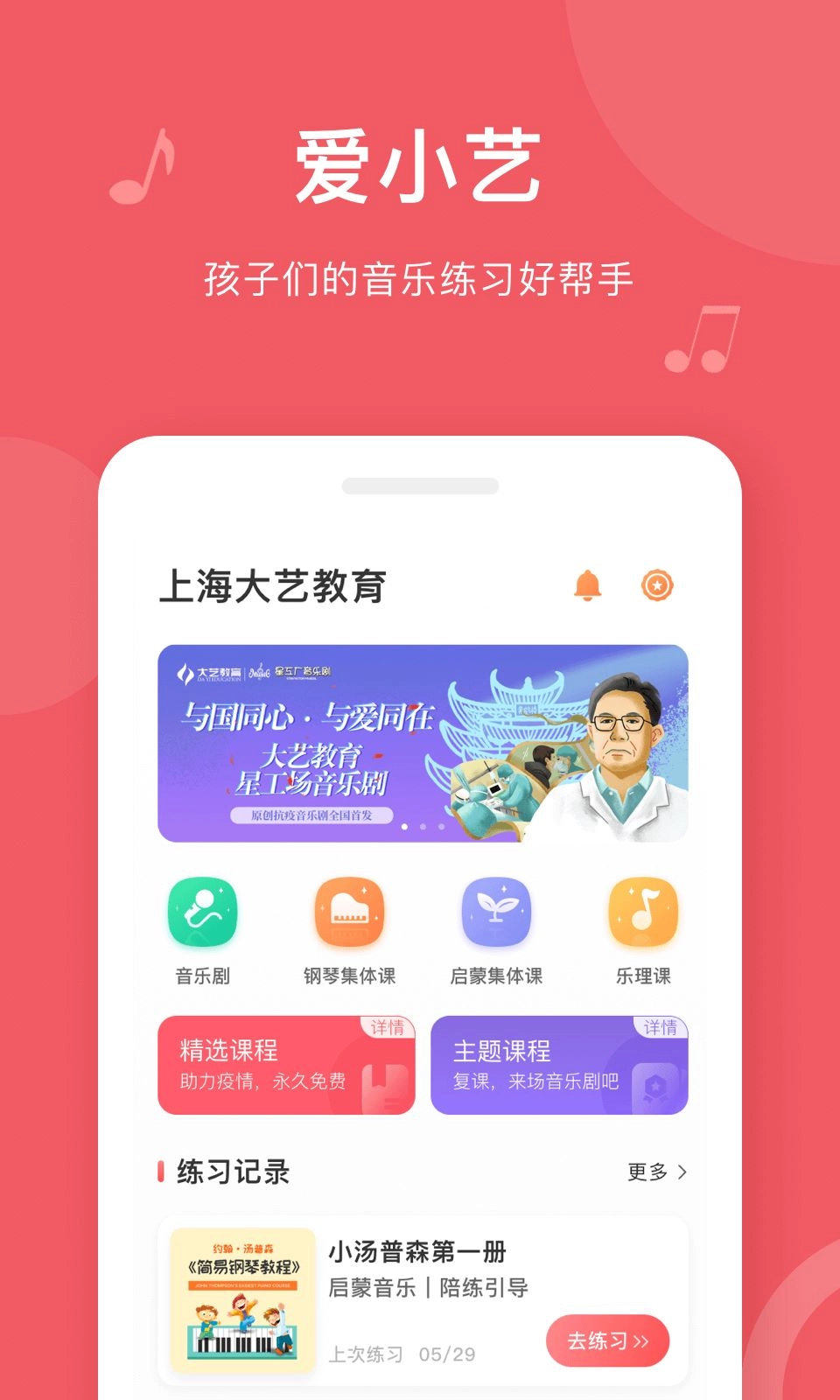 2、成功登录后,会进入首页。在首页点击相应课程图标,例如音乐剧、钢琴集体课等,就能进入课程详情页并开启学习操作。