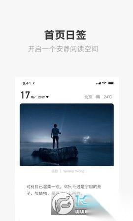 2、文章推荐,每天都会为用户推荐一个文章,可在文章里面看到各种文艺的内容。