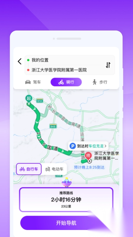 2、在App里,用户能够直接搜索目的地并开启导航。无论是驾车出行,还是选择骑行、步行,App均会提供详尽的路线规划。其地图界面清晰直观,所有信息都清晰呈现,便于用户知悉出行路况。