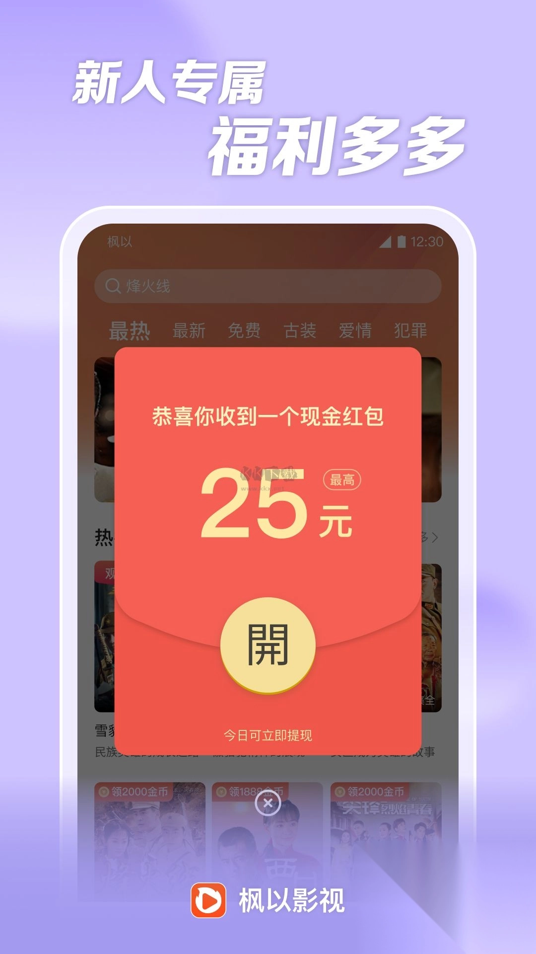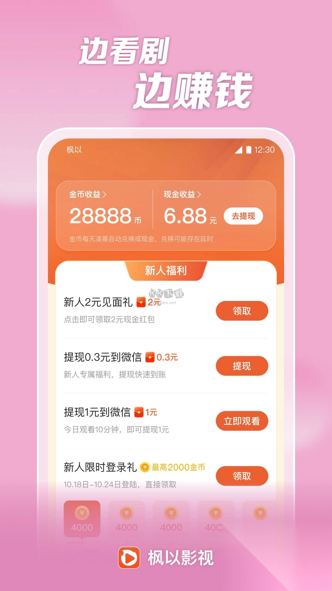 2024 最新版的枫以视频,是一款能让你在观看视频的同时赚取奖励的软件。该软件拥有丰富的电影、电视剧等资源,所有内容皆可免费观看。不仅如此,它还为用户准备了多种奖励可供领取,每天都推出各类看视频赢奖励的活动。在这里,各种影视剧不受时间地点限制,你都能随心观看,其高清画质更是能给你带来如同在影院观影般的绝佳体验。