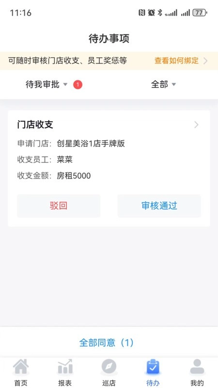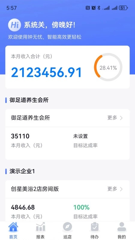 老板可查看门店各类营业数据,收入清晰。