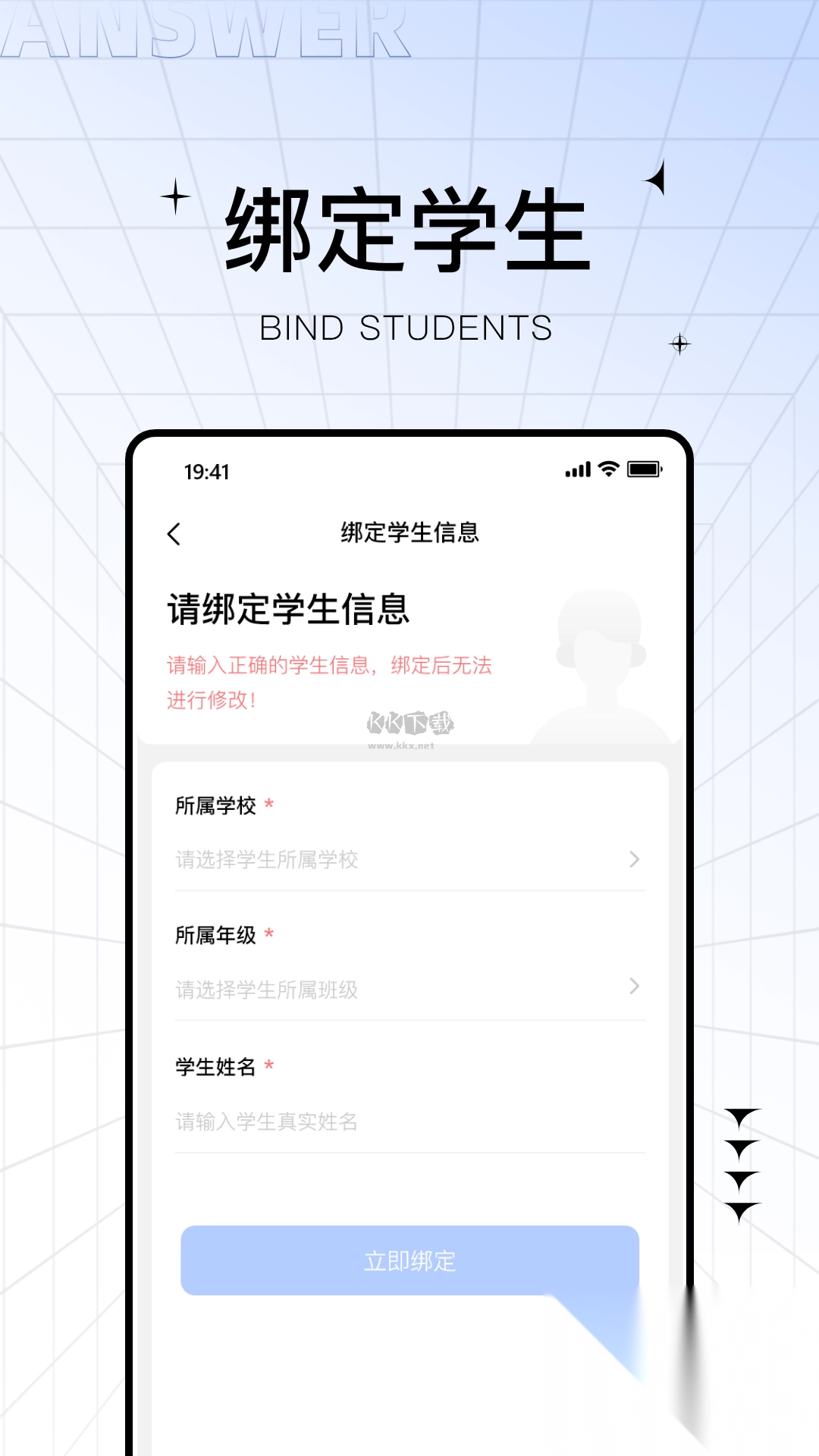 3、选择所属年级,请务必确认,绑定之后的短期时间内是无法修改的