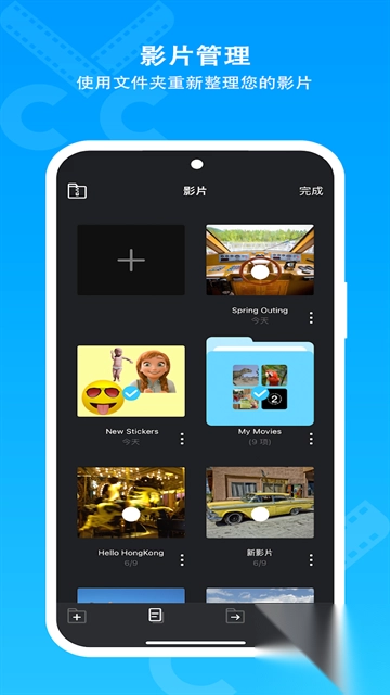 2、支持同时向电影项目添加多达六种不同类型的媒体,包括视频、照片(源自相册或相机拍摄)、自画、文本、音乐以及语音。