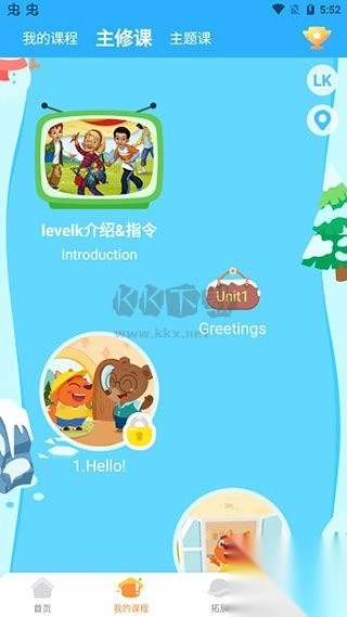 3、进入软件首页,点击我的课程,孩子就可以开始学习了;