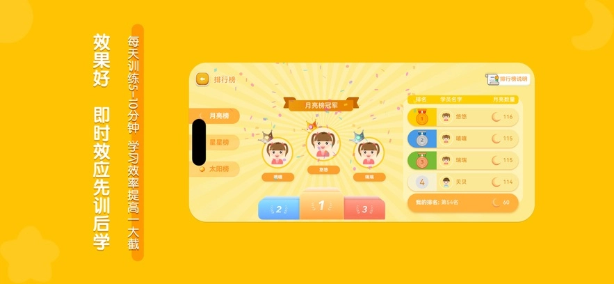 新增星星榜、太阳榜等多种排行榜模式,多角度展示训练成果,激励孩子与家人持续挑战自我。