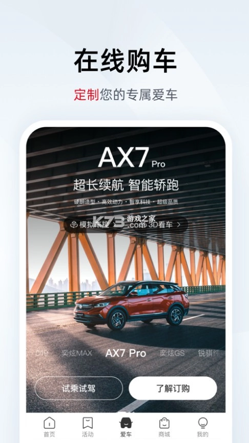 - 实现问题修复并优化性能。探索:能够开展发帖、点赞、回复之类的互动交流,海量积分等您来拿。服务:可查询经销商相关信息,线上预约保养或维修服务。选车:查询风神旗下各类车型(全新一代AX7、全新AX5、全新AX3、E70等)的参数配置、图片、价格等详尽信息。我的:进行车主认证和解绑,查看领券、发帖等记录。社区:提供社区资讯