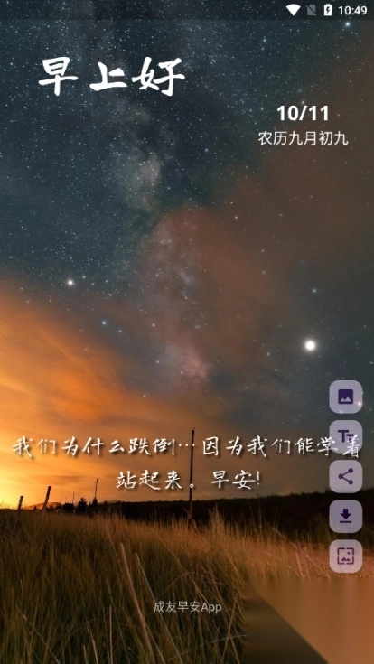 《成友早安》是一款智能的早安问候软件,它能够依据时间以及用户心情,自动生成图片与文字。这款软件每天都会更新大量的早安图片,同时还能自动生成数千条风格各异的祝福语,内容涵盖哲理、友情、诗文等方面。不仅如此,它还支持用户自定义编辑文字的颜色、大小,并可将文字拖动到图片的任意位置,使得早安问候既饱含温度又富有创意。