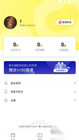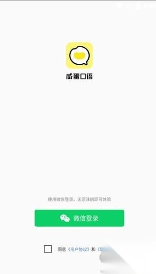 1、打开咸蛋英语口语app,进入登录页面(微信登录无需注册)。