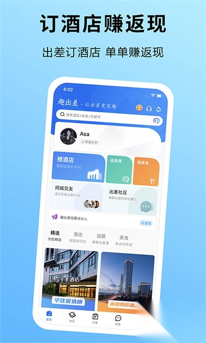 1、出差用趣出差app订酒店,天天赚返现,即订即返,积分当钱花。