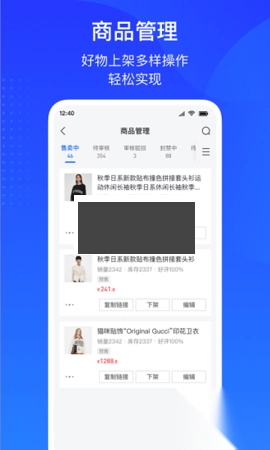 【商品管理】具备上下架商品、调整价格与库存、修改商品详情等商品管理操作的支持功能。