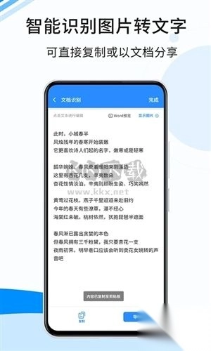 ●智能识别图片转文字,可直接复制或以文档分享