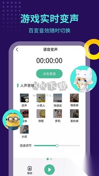 1、声音变幻无穷,瞬间变身成为萌妹子、大叔、机器人等,玩转声音的魔法。