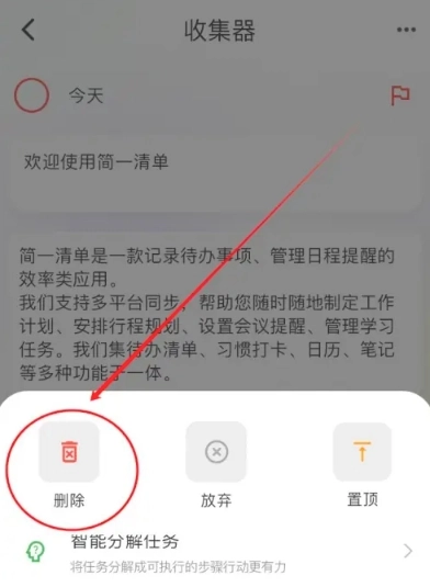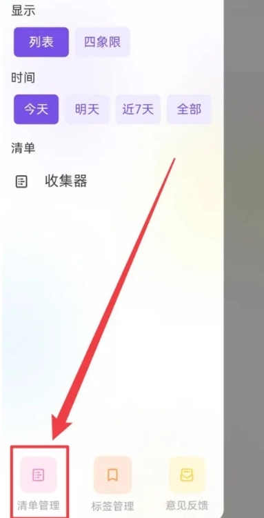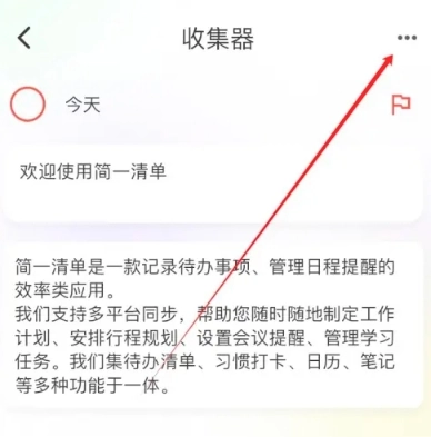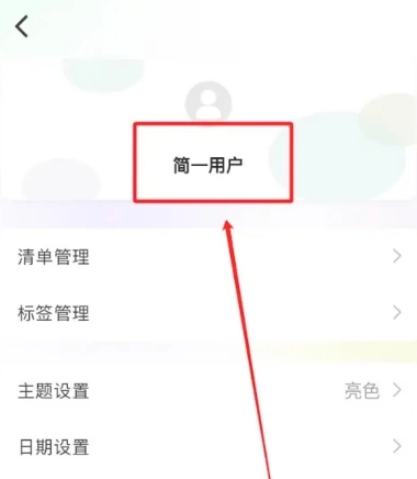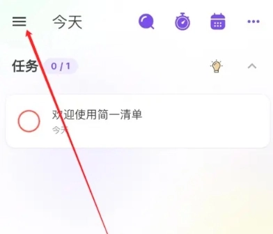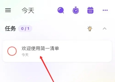 1. 打开简一清单软件,进入首页界面后,点击箭头所指示的方向。