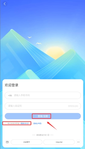 3、输入常用手机号码并获取短信验证码,填写正确验证信息后即可完成登录。