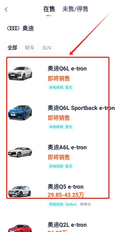 2、选好车辆品牌后,页面会自动加载出该品牌旗下的各类车型,从中选择你想要了解的车辆型号。