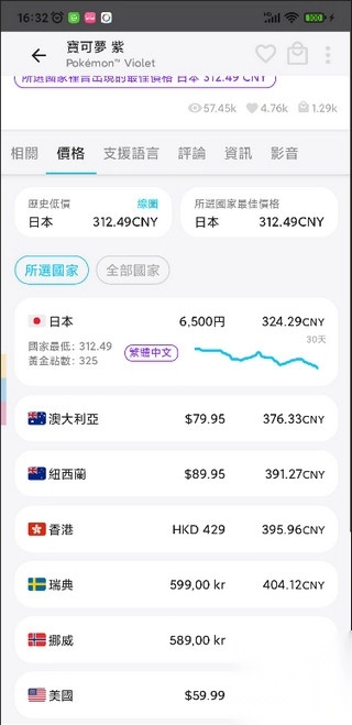 6. 进入游戏的价格页面,便可以查看到该游戏在各个国家和地区的具体价格 。倘若你的eshop商店所属地区与之对应,那么就能享受相应的折扣 。