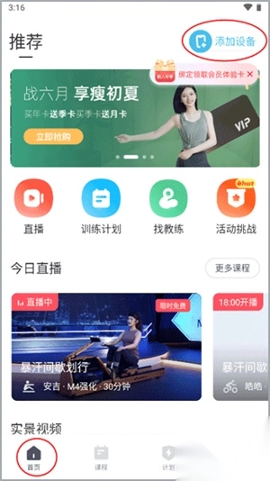 1第一步,需完成账号的注册与登录。进入首页界面后,点击右上角的“添加设备”选项。