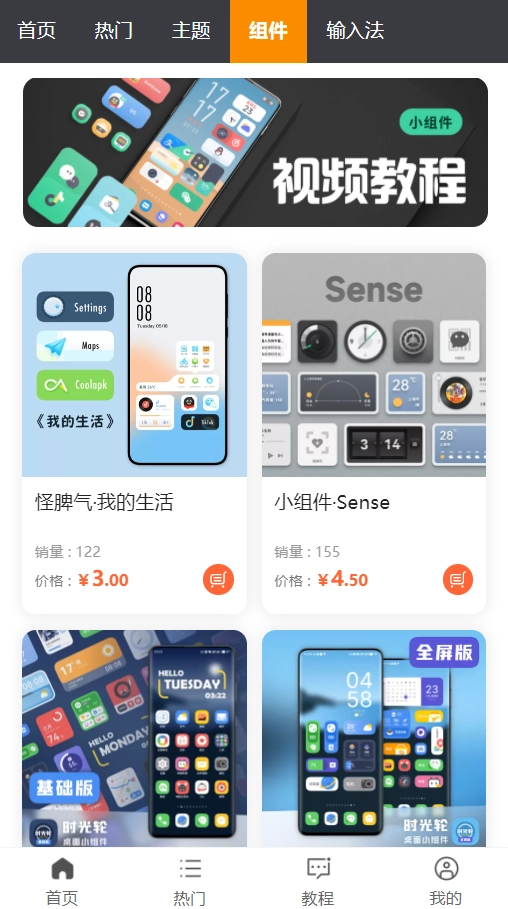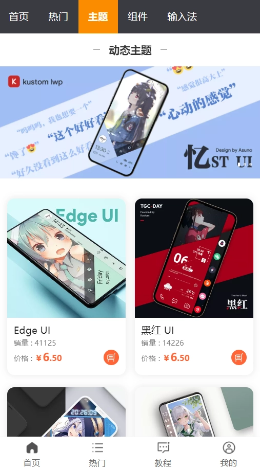 1. 涵盖各类出色的原创主题,像热门推荐、动态主题、小部件以及免费区域等。