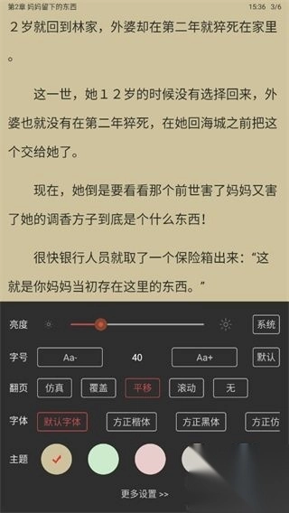 支持字体/字号自定义、阅读背景切换、自动翻页等功能,打造专属阅读空间。