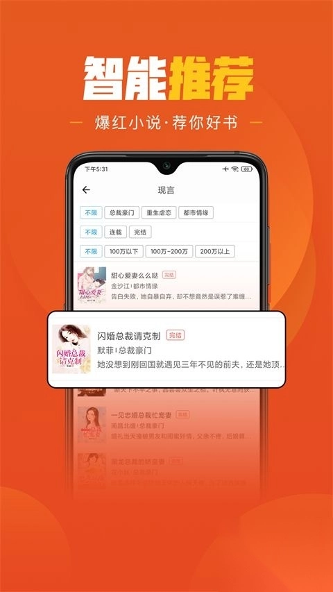 精选上万本已完结优质小说,再也不用忍受追更等待的痛苦,一口气读到结局。