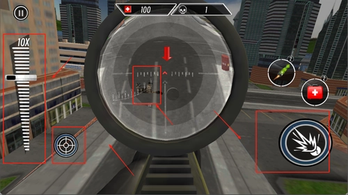 2、左边是调整放大倍率和开镜,右边是开火及换弹,玩家需要找到敌人并且击杀他们。
