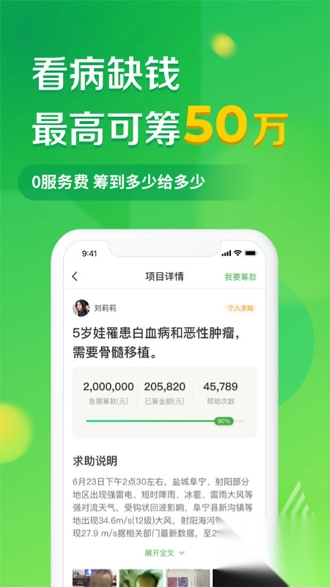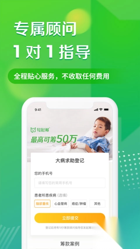 轻松筹大病筹款无服务费,免费为用户提供细致周到的服务,帮您解决医疗费用的难题,引领行业发展促使行业回归公益初心。