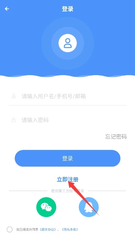1、初次使用需阅读平台服务条款与隐私政策,确认后点击同意按钮进入应用。