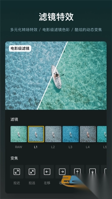 【滤镜色彩】VN 提供 20 余种滤镜样式,你也可以自己调节滤镜参数,实现自己最喜欢的色调。