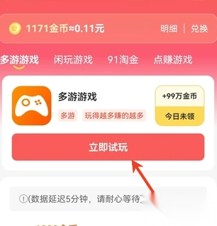 3、用户只需点击,即可在线试玩,同时还能获取更多金币奖励。