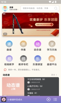 1、在小谱通动态谱软件下载处,很容易就能发现各种类型的曲子,这些曲子可用于乐器弹奏。