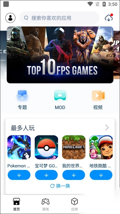 1、安装好本站提供的软件,可以看到主页面就是醒目的热门游戏了,拥有专题、mod、最多人玩、最近更新等分类