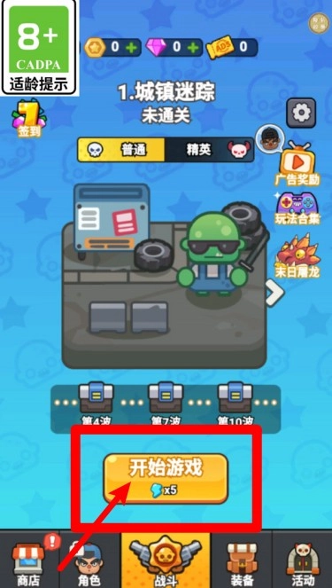 1.点击主界面下方“开始游戏”按钮,消耗钥匙即可进入当前章节关卡并开启生存挑战,挑战成功还有额外奖励。