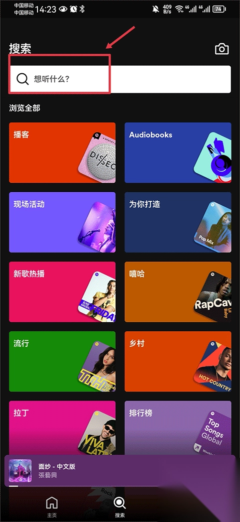 1、打开app后,在搜索页面中输入歌曲名字或者艺人名字
