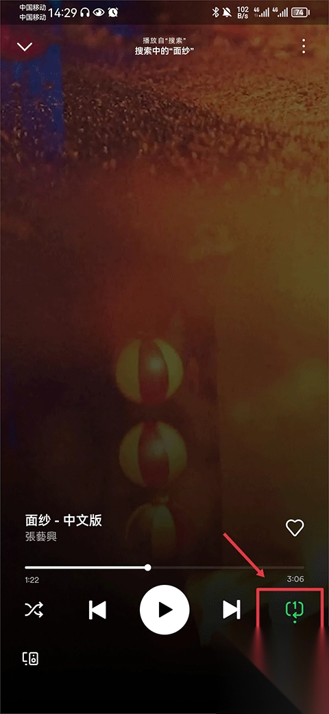 1、在歌曲播放界面中点击循环按钮,直到按钮上方显示数字1时,即代表已设置为单曲循环播放模式