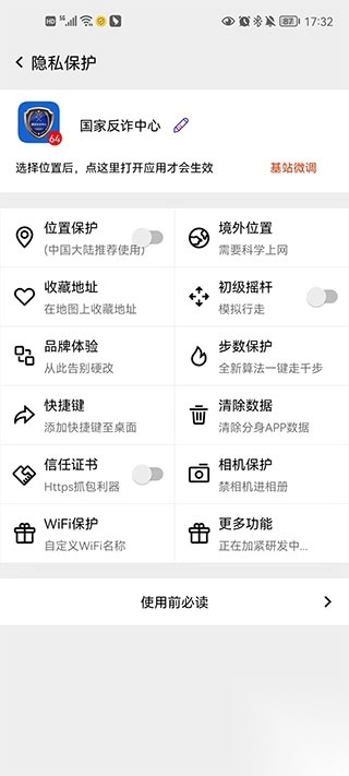 3、接下来,依据自身需求开启定位保护、初级摇杆以及自定义名称等功能。
