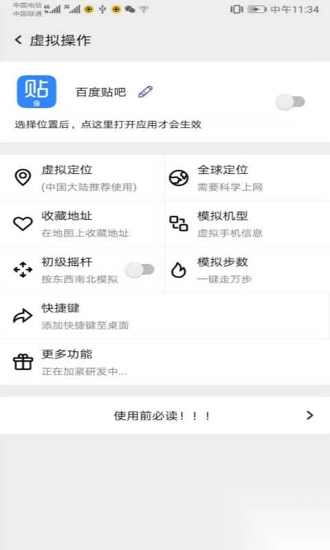 2、支持虚拟定位、模拟机型、模拟步数等趣味插件功能。