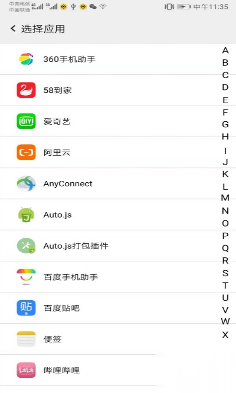 5、进行应用排序,依据应用首字母的拼音进行排序。