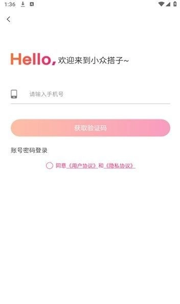 1、下载安装APP后打开软件,提示同意与否,点击同意进入注册界面;