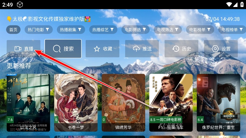 1. 开启太极影视App,轻点直播选项,稍作等待,就能观看直播频道。