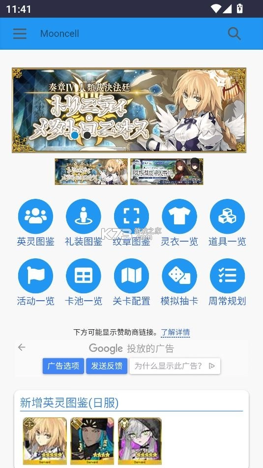 想要查看英灵图鉴的话,可以通过《fgowikimooncell》这款 app,它属于游戏百科软件,是专门针对 fgo 开发的游戏工具。在这里,所有英灵图鉴都能点击查看,同时还有礼装图鉴、纹章图鉴,支持一览。另外,所有活动以及卡池相关信息也都可以在这里查看。