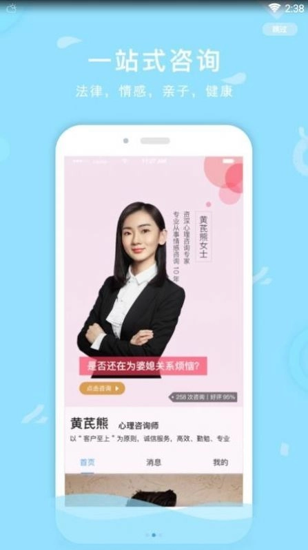 提供在线即时法律咨询服务,为您打造一对一专属法律服务。同时,还有法律援助项目。您可在线咨询各领域专业律师,涵盖离婚律师、债权债务律师、投资合作与股权律师、工伤及劳动法律师、房地产律师、交通事故纠纷律师、商标专利及知识产权律师、刑事犯罪律师等。