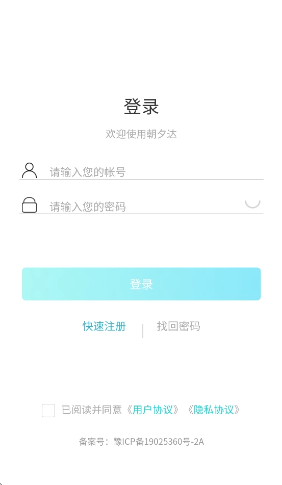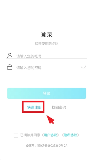 下载安装并打开朝夕达物流软件,进入登录界面后点击快速注册