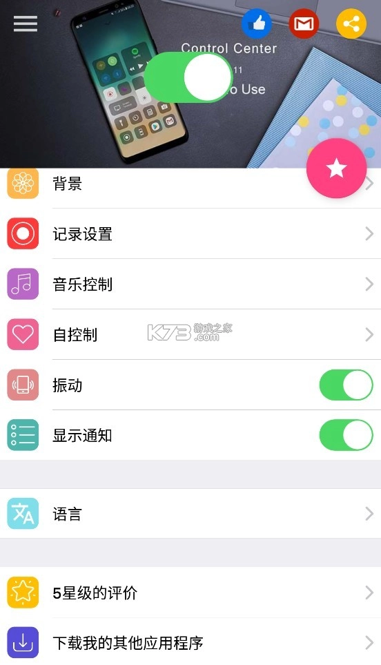 《控制中心》v3.3.5 这款软件非常实用。它界面简洁,操作便捷,能让用户轻松管理手机各项功能。丰富的自定义设置,满足不同用户个性化需求。无论是快速调节音量、亮度,还是管理通知,都高效流畅,极大提升了手机使用体验,值得推荐。
