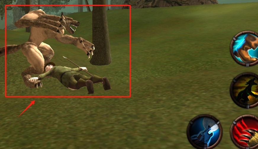 3、被狼人扑倒时,点击右侧四个技能按钮反击,优先选高伤害或控制技能脱困。